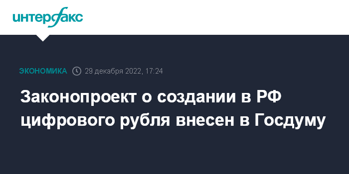 Москва. 29 декабря. INTERFAX.RU - Группа депутатов и сенаторов внесла в Госдуму законопроект, который регулирует в правовом пространстве РФ обращение и выпуск цифрового рубля.