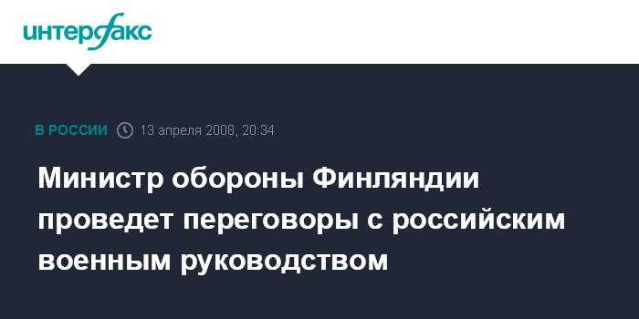 Министр обороны Финляндии проведет переговоры с российским военным руководством