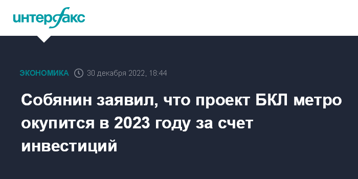"Инвестиции, которые приходят в "коридоре метро", они дают доходы в бюджет. В 2023 году только за счет инвестиций, создания новых рабочих мест в "коридоре БКЛ" мы уже окупим этот проект полностью. И еще такую же сумму получит бюджет федеральных налогов", - сказал мэр в интервью Первому каналу.