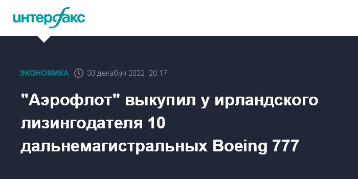 "Аэрофлот" выкупил у ирландского лизингодателя 10 дальнемагистральных Boeing 777