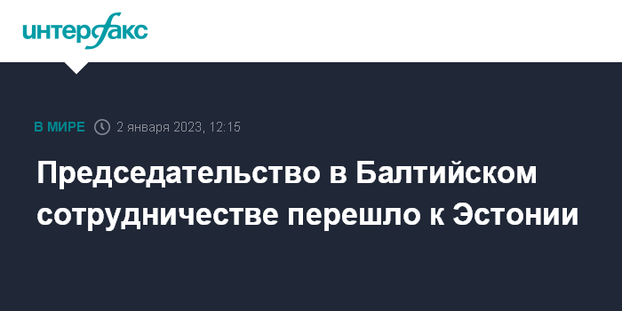 Москва. 2 января. INTERFAX.RU - Эстония возглавит в 2023 году сотрудничество государств Балтии, в качестве председателя будет координировать совместную деятельность с Латвией и Литвой в Балтийском совете министров и Балтийской ассамблее, сообщили "Интерфаксу" в понедельник в пресс-службе МИД республики.