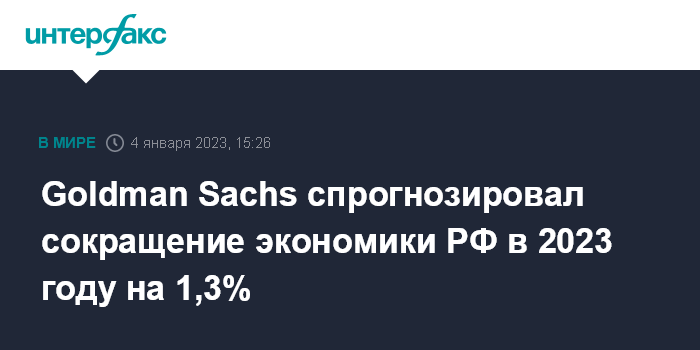 Goldman Sachs спрогнозировал сокращение экономики РФ в 2023 году на 1,3%