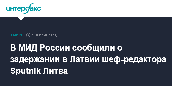 В МИД России сообщили о задержании в Латвии шеф-редактора Sputnik Литва