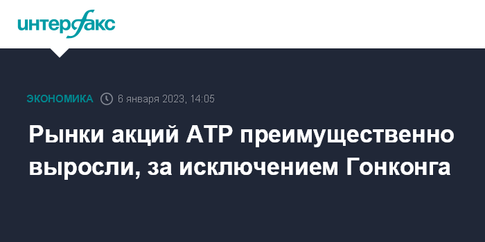 Москва. 6 января. INTERFAX.RU - Фондовые индексы Азиатско-Тихоокеанского региона (АТР) преимущественно выросли в пятницу вслед за американским фондовым рынком, исключение составил гонконгский индикатор.