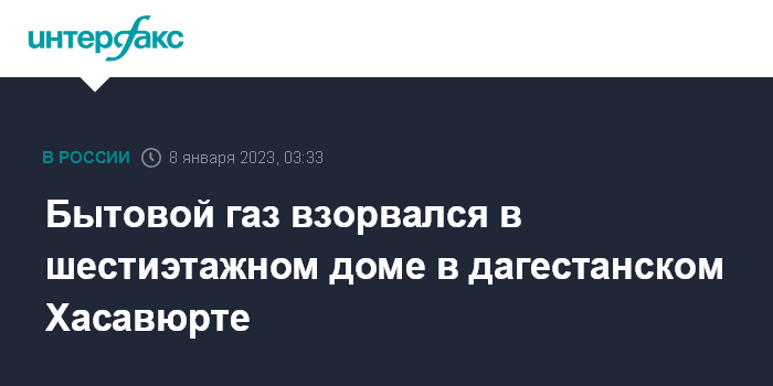 Москва. 8 января. INTERFAX.RU - Взрыв газа произошел в жилом доме в дагестанском Хасавюрте, есть разрушения, сообщили "Интерфаксу" в экстренных службах.