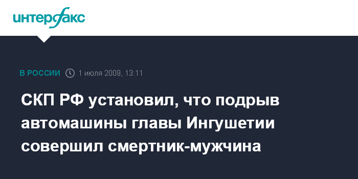СКП РФ установил, что подрыв автомашины главы Ингушетии совершил смертник-мужчина