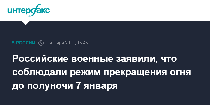 Российские военные заявили, что соблюдали режим прекращения огня до полуночи 7 января