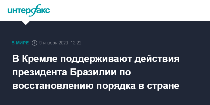 "Безусловно, мы самым решительным образом осуждаем действия зачинщиков беспорядков и абсолютно поддерживаем президента Бразилии Лулу да Силву, поддерживаем его действия, направленные на восстановление порядка и законности в стране", - сказал он журналистам.