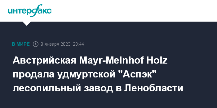 Австрийская Mayr-Melnhof Holz продала удмуртской "Аспэк" лесопильный завод в Ленобласти