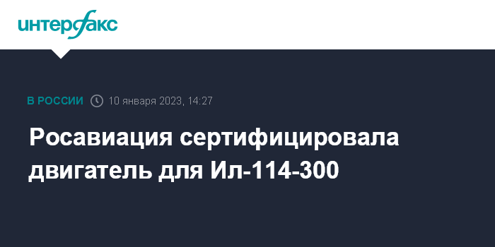 Москва. 10 января. INTERFAX.RU - Росавиация выдала АО "ОДК-Климов" (входит в "Ростех") сертификат типа на турбовинтовой двигатель ТВ7-117СТ-01, которым будут оснащаться самолеты Ил-114-300.