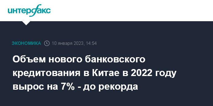 Объем нового банковского кредитования в Китае в 2022 году вырос на 7% - до рекорда