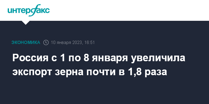 Россия с 1 по 8 января увеличила экспорт зерна почти в 1,8 раза