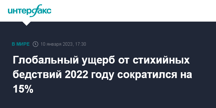 Глобальный ущерб от стихийных бедствий 2022 году сократился на 15%