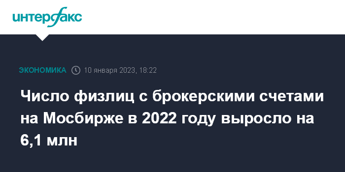 Число физлиц с брокерскими счетами на Мосбирже в 2022 году выросло на 6,1 млн