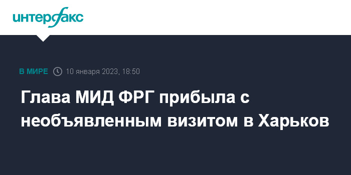 Москва. 10 января. INTERFAX.RU - Глава МИД ФРГ Анналена Бербок совершает визит в Харьков, причем о ее поездке на Украину ранее не объявляли, сообщает во вторник RTL.
