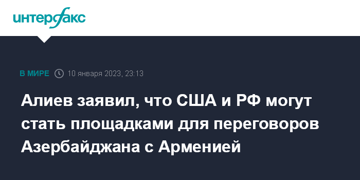 Москва. 10 января. INTERFAX.RU - Президент Азербайджана Ильхам Алиев заявил, что в Баку видят площадками для переговоров с Арменией Соединенные Штаты и Россию.