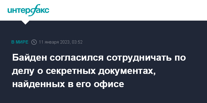 Байден согласился сотрудничать по делу о секретных документах, найденных в его офисе