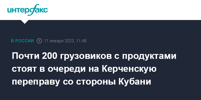 Почти 200 грузовиков с продуктами стоят в очереди на Керченскую переправу со стороны Кубани