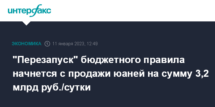 "Перезапуск" бюджетного правила начнется с продажи юаней на сумму 3,2 млрд руб./сутки
