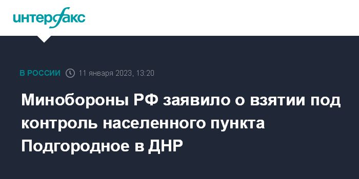 Москва. 11 января. INTERFAX.RU - Российские военные заявили о взятии под контроль населенного пункта Подгородное в ДНР.