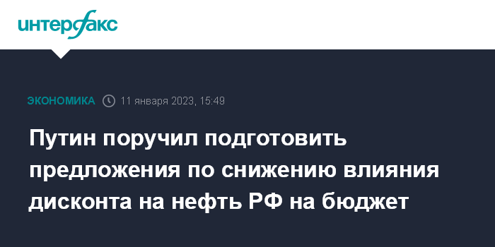 В связи с этим Путин поручил подготовить предложения об ограничении влияния дисконта на российскую нефть на бюджет.