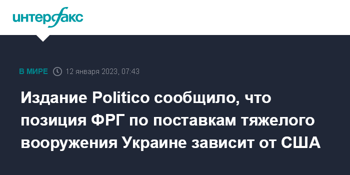 Издание Politico сообщило, что позиция ФРГ по поставкам тяжелого вооружения Украине зависит от США