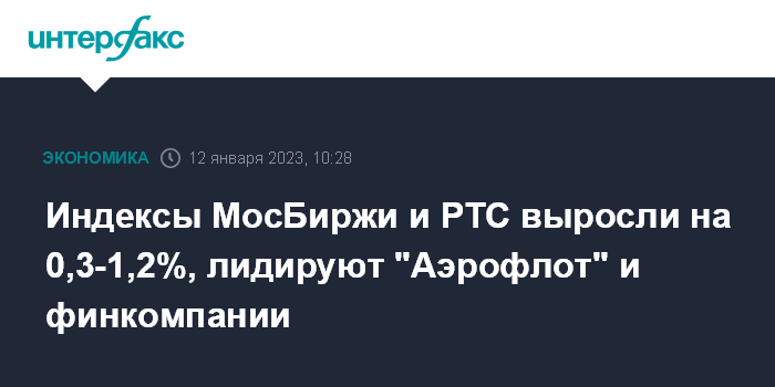 Индексы МосБиржи и РТС выросли на 0,3-1,2%, лидируют "Аэрофлот" и финкомпании