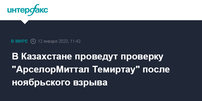 Москва. 12 января. INTERFAX.RU - Правительство Казахстана объявило о комплексной проверке, которую проведут в АО "АрселорМиттал Темиртау" (АМТ) с привлечением независимых консультантов.