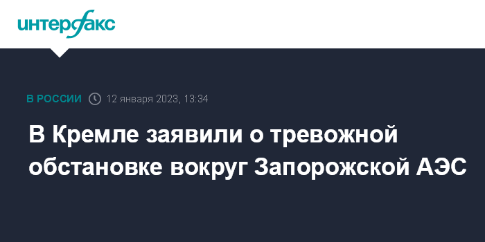 Москва. 12 января. INTERFAX.RU - Обстановка на Запорожской АЭС остается тревожной, заявил пресс-секретарь президента РФ Дмитрий Песков.