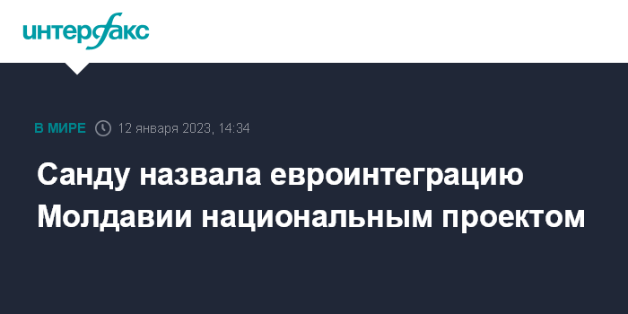 Москва. 12 января. INTERFAX.RU - Президент Молдавии Майя Санду заявила, что европейская интеграция страны является приоритетным национальным проектом, сообщила пресс-служба главы молдавского государства.