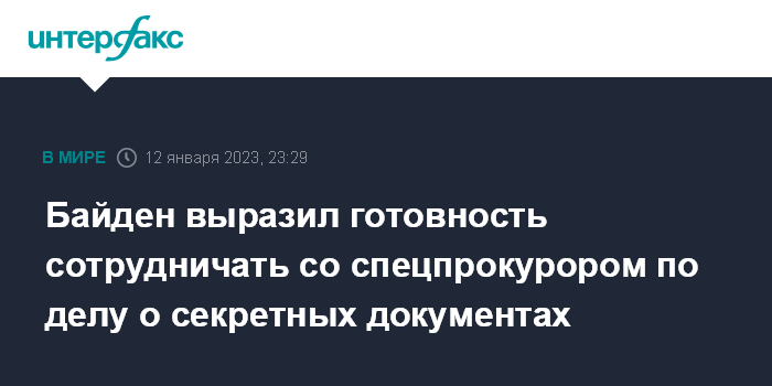 Байден выразил готовность сотрудничать со спецпрокурором по делу о секретных документах