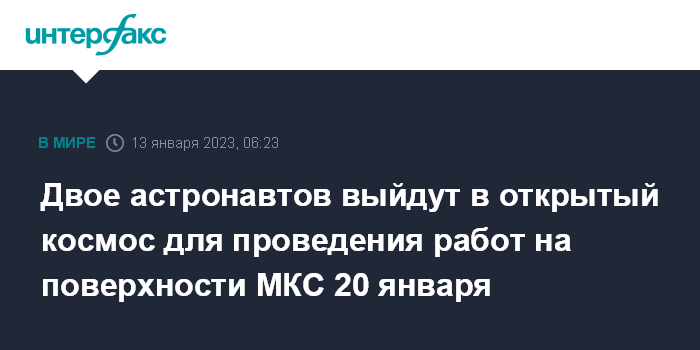 Двое астронавтов выйдут в открытый космос для проведения работ на поверхности МКС 20 января