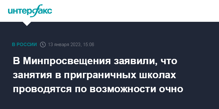 Москва. 13 января. INTERFAX.RU - Занятия в школах на приграничных территориях РФ проводятся в очном формате там, где это позволяет ситуация, сообщили в министерстве просвещения России.