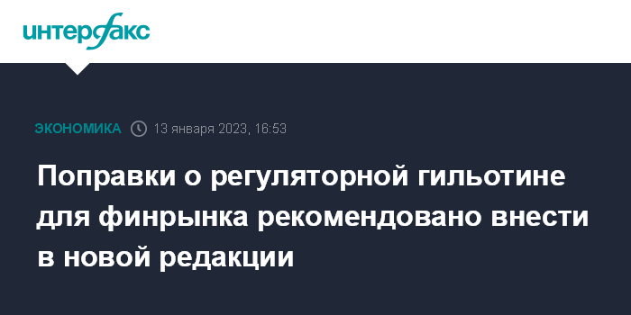 Поправки о регуляторной гильотине для финрынка рекомендовано внести в новой редакции