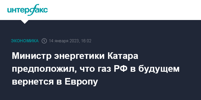 Министр энергетики Катара предположил, что газ РФ в будущем вернется в Европу