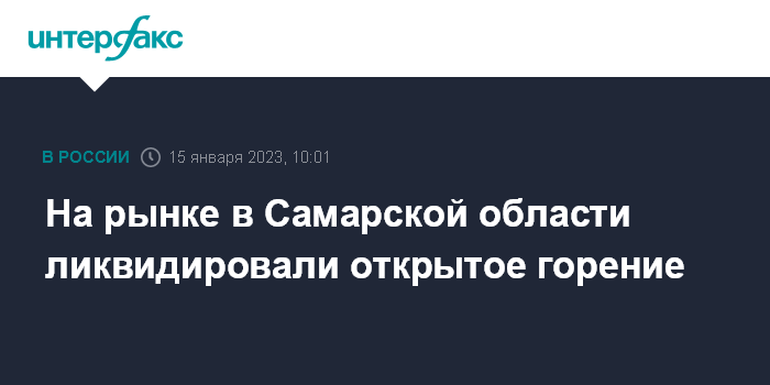 Москва. 15 января. INTERFAX.RU - Открытое горение ликвидировано на пожаре на рынке в городе Кинель в Самарской области, сообщает региональное МЧС в воскресенье.