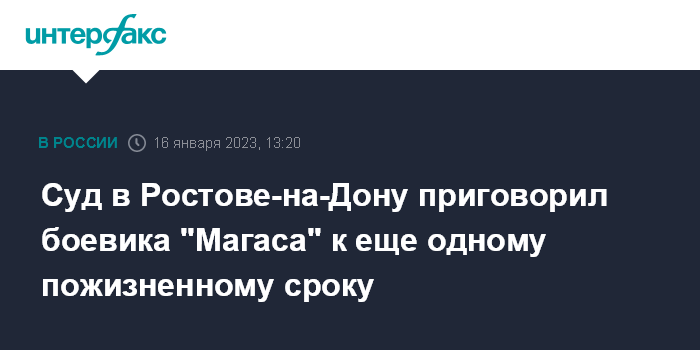 Суд в Ростове-на-Дону приговорил боевика "Магаса" к еще одному пожизненному сроку