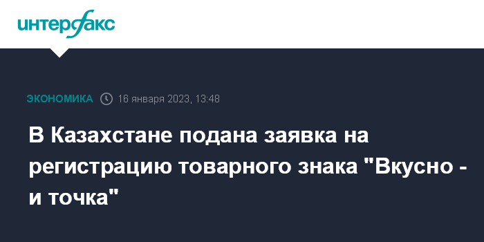 Москва. 16 января. INTERFAX.RU - В Казахстане находятся на рассмотрении экспертной организации заявки российского ООО "Система ПБО" (бывшее ООО "Макдоналдс") на регистрацию товарных знаков со словами "Вкусно - и точка", сообщили "Интерфаксу" в департаменте по правам интеллектуальной собственности Минюста республики.