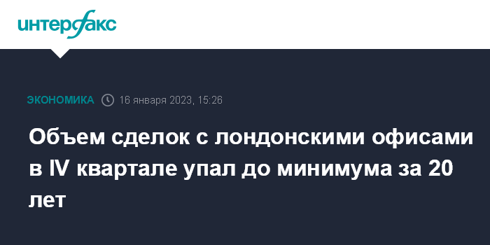 Москва. 16 января. INTERFAX.RU - В Лондоне в октябре-декабре 2022 года объем сделок по покупке и продаже офисных помещений рухнул до минимума за 20 лет на фоне неопределенности, вызванной предложенной правительством Лиз Трасс, а затем отмененной налоговой реформой.