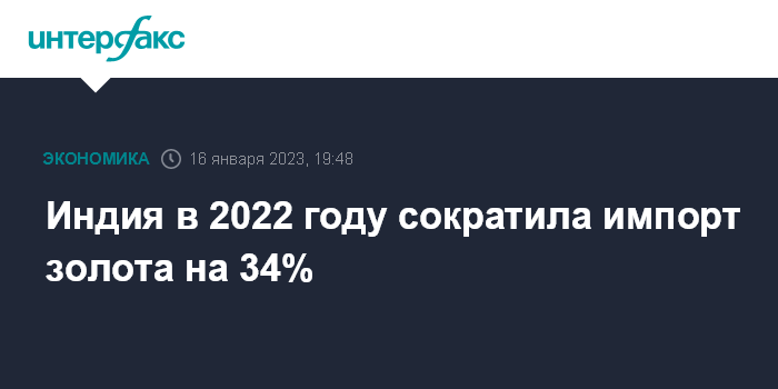 Ранее Reuters сообщал со ссылкой на источники, что в натуральном выражении импорт золота в Индию в декабре 2022 года упал до самого низкого месячного уровня по крайней мере за два десятилетия - 20 тонн против 95 тонн в декабре 2021 года, а по итогам всего года составил 706 тонн против 1 068 тонн.