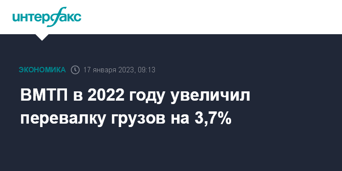 Москва. 17 января. INTERFAX.RU - ПАО "Владивостокский морской торговый порт" (ВМТП, основная стивидорная компания в порту "Владивосток", входит в группу FESCO) в 2022 году обработало, по уточненным данным, 13,4 млн тонн грузов, что на 3,7% больше, чем в 2021 году, сообщили "Интерфаксу" в компании.