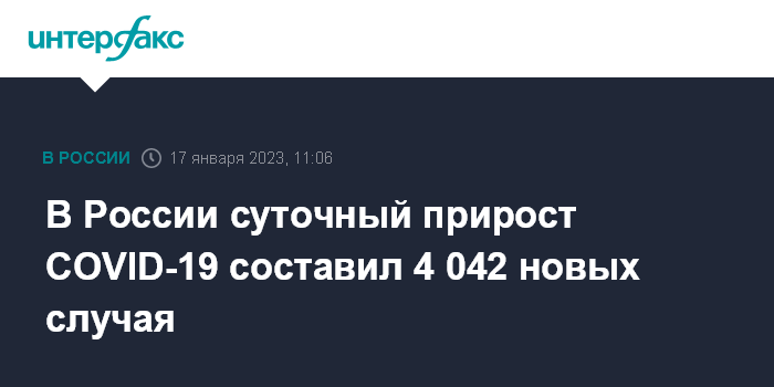 Москва. 17 января. INTERFAX.RU - В России за сутки выявили 4 042 новых случая заражения коронавирусом, умерли 45 заболевших, сообщает оперативный штаб по борьбе с COVID-19.