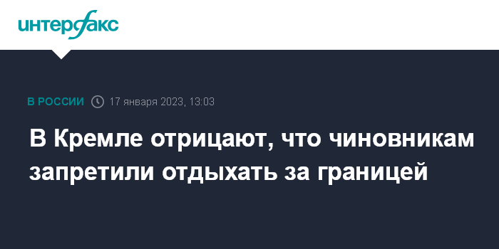 Москва. 17 января. INTERFAX.RU - Административного запрета на выезд чиновников на отдых за рубеж нет, однако руководители коллективов вправе выступать с подобными рекомендациями, поскольку этот вопрос имеет этический характер, сказал на брифинге пресс-секретарь президента Дмитрий Песков.