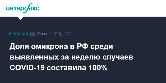 Доля омикрона в РФ среди выявленных за неделю случаев COVID-19 составила 100%