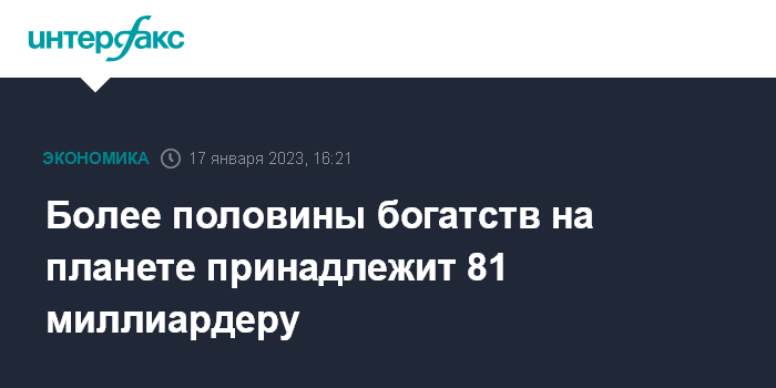 Более половины богатств на планете принадлежит 81 миллиардеру