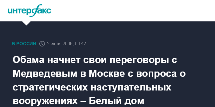 Обама начнет свои переговоры с Медведевым в Москве с вопроса о стратегических наступательных вооружениях – Белый дом