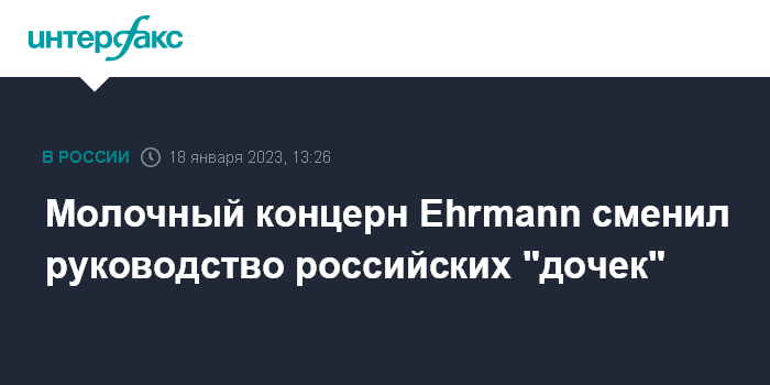 Москва. 18 января. INTERFAX.RU - Германский молочный концерн Ehrmann сменил руководство своих российских "дочек" – ООО "Эрманн" и ООО "Кампина".