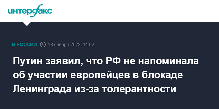 Путин заявил, что РФ не напоминала об участии европейцев в блокаде Ленинграда из-за толерантности