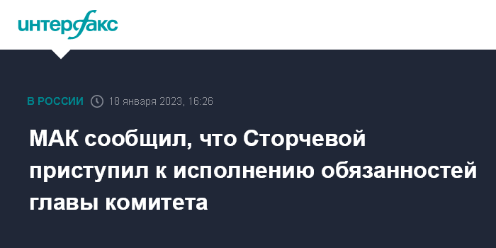 МАК сообщил, что Сторчевой приступил к исполнению обязанностей главы комитета