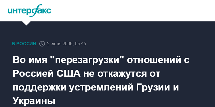 Во имя "перезагрузки" отношений с Россией США не откажутся от поддержки устремлений Грузии и Украины